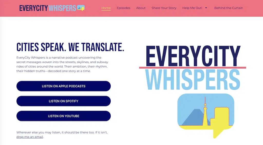 EveryCity Whispers is a narrative podcast uncovering the secret messages woven into the streets, skylines, and subway rides of cities around the world. Their ambition, their rhythm, their hidden truthsβdecoded one story at a time.